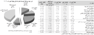 في هذا الإطار، تراجعت حصّة الموجودات الخارجيّة لمصرف لبنان إلى ١٢،٢٥٪ من مجموع ميزانيّة هذا الأخير كما في نهاية شهر آب/أغسطس ٢٠٢١، مقابِل ١٢،٥٠٪ في منتصفه، فيما إرتفعت حصّة إحتياطيّ الذهب إلى ١٠،٤٧٪ من ١٠،٢٣٪ قبل فترة أسبوعين. من جهةٍ أُخرى، واصلت الموجودات الأخُرى إرتفاعها لتشكّل ٤٢،٩١٪ من مجموع ميزانيّة مصرف لبنان.