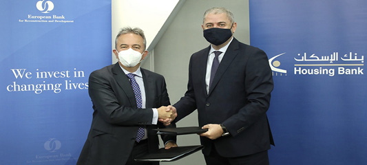 وقّع البنك الأوروبي لإعادة الإعمار والتنمية اتفاقية تمويل إئتماني بقيمة ٥٠ مليون دولار يقدمها لبنك الإسكان – البنك الأكثر والأوسع انتشاراً في الأردن بهدف تعزيز أنشطة التصدير والاستيراد في المملكة وذلك في إطار برنامج تيسير التجارة (TFP) التابع للبنك الأوروبي.
