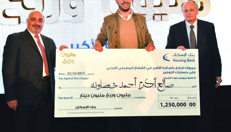 أعلن بنك الإسكان عن الرابح بجائزة نهاية العام 2018 لحسابات التوفير، والتي تعد الكبرى في السوق المصرفي الأردني والبالغة قيمتها مليون وربع المليون دينار، والتي ربحها السيد محمد عبدالله أحمد الثوابية والمدخر لدى بنك الإسكان فرع ناعور. وتأكيداً على قواعد الشفافية والنزاهة في إجراءات السحب على الجائزة، فقد تم الإعلان عن نتائج السحب بحضور اللجنة…