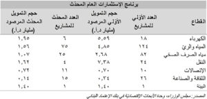 نتيجة المداولات، وافقت المجموعة خلال الإجتماع على تخفيض العدد الإجمالي لمشاريع برنامج الإستثمارات العام من ٢٨٥ مشروع (٢٢،٩٤ مليار د.أ.) إلى ١٣٨ مشروع (٨،٢٢ مليار د.أ.) وعلى تقصير الإطار التنفيذي لهذا البرنامج من ١٢ عام إلى ١٠ أعوام، بناءً على مجموعة من العوامل كأولويّة هذه المشاريع، أثرها على الوضع المالي، أثرها على بيئة ممارسة الأعمال وخلق فرص العمل، أثرها على مستويات الفقر، سهولة تنفيذها وإستدامة مفعولها.