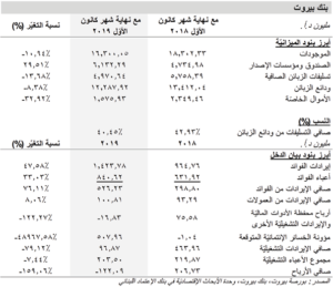 اظهرت البيانات المالية المدققة لبنك بيروت خسائر صافية بقيمة ١٢٢،٠٩ مليون د.أ. خلال العام ٢٠١٩، مقابل أرباح بقيمة ٢٠٦،٧٣ مليون د.أ. في العام ٢٠١٨. في التفاصيل، إرتفع صافـي الإيرادات من الفوائد بنسبة ٧٦،١١٪ على أساس سنوي إلى ٥٢٦،٢٣ مليون د.أ. كما وزاد صافـي الإيرادات من العمولات بنسبة ٨،٠٦٪ إلى ١٠٠،٨١ مليون د.أ. وقد طغى على هذا الإرتفاع تراجع أرباح محفظة الأدوات المالية والإيرادات التشغيلية الأخرى بنسبة ١٢٢،٢٧٪ سنويًا إلى خسائر بقيمة ١٦،٨٣ مليون د.أ. خلال العام ٢٠١٩، إضافة إلى إرتفاع مؤونات الخسائر الإئتمانية المتوقعة إلى ٥٠٧،٩٦ مليون د.أ. في هذا الإطار، إنكمش صافـي الإيرادات التشغيلية بنسبة ٧٩،١٢٪ إلى ٩٦،٨٧ مليون د.أ.، قابله تدن في الأعباء التشغيلية بنسبة ٧،٤٤٪ إلى ٢٠٣،٥٠ مليون د.أ.. أما على صعيد الميزانية، فقد تقلصت موجودات بنك بيروت بنسبة ١٠،٩٤٪ خلال العام ٢٠١٩ إلى ما فوق الـ١٦،٣٠ مليار د.أ.، وذلك في ظل تراجع محفظة التسليفات الصافية بنسبة ١٣،٦٨٪ إلى حوالي ٤،٩٧ مليار د.أ. وإنكماش أدوات الدين بالكلفة المطفأة بنسبة ٢٥،٩٢٪ إلى ٥،٠٨ مليار د.أ.، ما طغى على إرتفاع رصيد الصندوق والتوظيفات لدى المصارف المركزية بنسبة ٢٩،٥١٪ إلى حوالي ٦،١٣ مليار د.أ. كذلك انكمشت ودائع الزبائن بنسبة ٨،٣٨٪ خلال العام ٢٠١٩ إلى ١٢،٢٩ مليار د.أ.، لينخفض بذلك معدل التسليفات الصافية من ودائع الزبائن إلى ٤٠،٤٥٪، من ٤٢،٩٣٪ في نهاية العام ٢٠١٨. وقد انكمشت الأموال الخاصة للمصرف بنسبة ٣٢،٩٢٪ إلى ١،٥٨ مليار د.أ. في نهاية العام ٢٠١٩. يجدر الذكر أن بنك بيروت قد ذكر في ملاحظة له أنه قد توقف عن تجميع البيانات المالية لصناديق الإستثمار تطبيقًا للمعيار المحاسبي رقم ١٠.