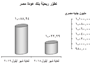 أظهرت البيانات المالية غير المدققة لبنك عودة ش.م. في مصر ارتفاعًا سنويًا بنسبة ٦،٥٢٪ في أرباح المصرف الصافية إلى ١،٠٨٨،٩٤ مليون جنيه مصري (٦٧،٠٠ مليون د،أ) خلال الأشهر التسعة الأولى من العام ٢٠١٩، مقابل ١،٠٢٢،٢٩ مليون جنيه مصري (٥٧،٣٦ مليون د.أ) في الفترة ذاتها من العام ٢٠١٨. وفي التفاصيل، زاد صافـي الايرادات من الفوائد بنسبة ٢٠،٣١٪ على أساس سنوي الى ٢،٠٩٩،٦٥ مليون جنيه مصري (١٢٩،١٨ مليون د.أ)، كما وتحسّن صافـي الايرادات من العمولات بنسبة ١،٥٩٪ الى ٤٠٤،٨٤ مليون جنيه مصري (٢٤،٩١ مليون د.أ) بالاضافة إلى انكماش أعباء خسائر الائتمان بنسبة ١٥،٠٢٪ إلى ١٠٨،٦٦ مليون جنيه مصري (٦،٦٩ مليون د.أ) ما طغى على الارتفاع في الأعباء الادارية بنسبة ٧،١٠٪ على صعيد سنوي إلى ٧٤١،٤٩ مليون جنيه مصري (٤٥،٦٢ مليون د.أ) والزيادة الملحوظة في الأعباء التشغيلية الاخرى الى ٢٩١،٥٦ مليون جنيه مصري (١٧،٩٤ مليون د.أ). أما على صعيد الميزانية، فقد نمت موجودات بنك عودة – مصر بنسبة ٤،٨٧٪ خلال الاشهر التسعة الاولى من العام ٢٠١٩ إلى ما فوق الـ٧١،٧٣ مليار جنيه مصري (٤،٤١ مليار د.أ) نتيجة زيادة التوظيفات مع المصارف بنسبة ٩٥،١٦٪ إلى ٥،٥٧ مليار جنيه مصري (٣٤٢،٨٥ مليون د.أ). وقد انخفضت محفظة التسليفات الصافية بنسبة ١٤،٠٩٪ الى حوالي ٢٦،٧٩ مليار جنيه مصري (١،٦٥ مليار د.أ.). في المقلب الآخر، ارتفعت ودائع الزبائن بنسبة ٤،٦١ ٪ إلى ٦١،٨٨ مليار جنيه مصري (٣،٨١ مليار د.أ)، ليكون معدل التسليفات من ودائع الزبائن قد تراجع إلى ٤٣،٢٩٪ من ٥٢،٧٢٪ في نهاية العام ٢٠١٨. وقد تحسّنت الأموال الخاصة للمصرف بنسبة ١،٧٩٪ خلال الاشهر التسعة الاولى من العام ٢٠١٩ لتصل إلى ٦،٨٥ مليار جنيه مصري (٤٢١،٤٨ مليون د.أ) مقارنة بـ٦،٧٣ مليار جنيه مصري (٣٧٦،٥٠ مليون د.أ) في نهاية العام ٢٠١٨.