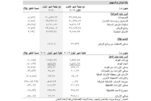 أظهرت البيانات المالية غير المدقّقة لبنك لبنان والمهجر تراجعًا سنويًا في ارباح المصرف الصافية بنسبة ٨٤،٠٤٪ خلال الأشهر التسعة الأولى من العام ۲۰۲۰ إلى ٥٧،١٦ مليون د.أ، مقارنةً بأرباح بلغت ٣٥٨،١٠ مليون د.أ. في الفترة ذاتها من العام ۲۰۱۹. في التفاصيل، ارتفع صافـي الإيرادات من الفوائد بنسبة ٦۷،۳٤٪ على صعيد سنويّ الى حوالي ٨٩٥،٦٣ ملیون د.أ.، ما طغى على تراجع صافـي الايرادات من العمولات بنسبة ٢٦،٤٣٪ الى ٧٤،٤٧ مليون د.أ والخسائر الصافية على محفظة الأدوات الماليّة والايرادات التشغيلية الأخرى والبالغة ٧٧،٦٤ مليون د.أ. (مقارنة مع أرباح بلغت ٧٤،٠٣ ملیون د.أ. في الفترة نفسها من العام ۲۰۱۹). وتعزى الزيادة في صافـي ايرادات الفوائد الى توصيات مصرف لبنان بخفض معدّلات الفوائد على ودائع الزبائن بحسب أحكام التعاميم الوسيطة رقم ٥٣٦ و٥٤٤ يجدر الاشارة الى ان المصرف قد سجّل مؤونات على خسائر إئتمانية متوقّعة بحوالي ٤٨٧،٦٩ مليون د.أ. خلال الأشهر التسعة الأولى من العام ٢٠٢٠. في هذا السياق، انخفض صافـي الايرادات التشغيليّة بنسية ٤٣،٠٢٪ على أساس سنوي الى ٤٠٤،٧٢ مليون د.أ. في المقابل، انخفض مجموع الأعباء التشغيليّة بنسبة ١٥،٥٣٪ سنويًا الى ٢٣٥،٣٧ مليون د.أ. كما في نهاية شهر أيلول/سبتمبر. أما لجهة الميزانيّة، فقد انخفض موجودات بنك لبنان والمهجر بنسة ٨،٤٢٪ خلال الأشهر التسعة الأولى من العام ۲۰۲۰ إلى حوالي ٣٠،٤٩ مليار د.أ.، نتيجة انكماش صافـي محفظة التسليفات بنسبة ٢٨،٢٨٪ الى نحو ٤،١٧ مليار د.أ.، علمًا أنّ رصيد النقد والتوظيفات مع البنوك المركزية قد تراجع بنسبة ٦،٤٥٪ الى ١٩،٣٦ملیار د.أ. في الاطار نفسه، تراجعت ودائع الزبائن لدى المصرف بنسبة ٩،٤٥٪ مع نهاية شهر ايلول/سبتمبر ۲۰۲۰ الى ٢٣،٦٩ مليار د.أ. لينخفض بذلك معدّل التسليفات الصافية من ودائع الزبائن الى ١٧،٦٠٪ مع نهاية شهر ايلول/سبتمبر ۲۰۲۰، علمًا انّ الأموال الخاصة للمصرف قد ارتفعت بنسبة ۲،۱۳٪ خلال فترة الأشهر التسعة الأولى من العام ۲۰۲۰ الی ٣،٢٢ ملیار د.أ.