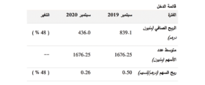يعود سبب تراجع الأرباح خلال الفترة الحالية إلى تراجع الإيرادات التشغيلية بنسبة ٨٪ لتصل إلى ٢٧٥٦،٤ مليون درهم مقابل ٢٩٩٨،٣ مليون درهم خلال الفترة نفسها من العام ٢٠١٩.