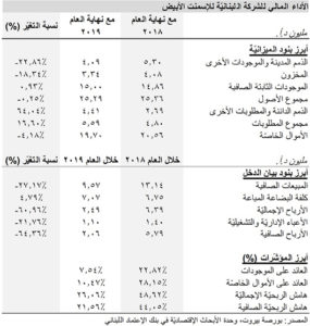 أظهرت البيانات المالية المدققة لشركة هولسيم (لبنان) ش،م،ل،، وهي إحدى الشركات الرائدة في صناعة الإسمنت في لبنان، خسائر بقيمة ٠،٨٥ مليون د،أ، خلال العام ٢٠١٩، مقارنة بأرباح بلغت ٢٧،٣٨ مليون د،أ، في العام ۲۰۱۸، في التفاصيل، انخفضت المبيعات الصافية للشركة بنسبة ٣٢،٧٢٪ على أساس سنوي إلى ٩٩،٩٧ مليون د،أ، خلال العام ٢٠١٩، رافقها انكماش بنسبة ٩،٢٤٪ في كلفة البضاعة المباعة الى ٧٥،٤٨ مليون د،أ،، ما أدى الى تراجع الأرباح الإجمالية بنسبة ٦٢،٥٦٪ إلى ٢٤،٥٠ مليون د،أ، في هذا الإطار، انكمش هامش الربحية الإجمالية (gross profit margin) للشركة من ٤٤،٠٣٪ خلال العام ۲۰۱۸ إلى ٢٤،٠٥٪ في العام ۲۰۱۹، من ناحية أخرى، انخفضت الأعباء الإدارية والتشغيلية للشركة بنسبة ٢٥،٠١٪ على أساس سنوي الى ١٩،٩٥ مليون د،أ، أما على صعيد الميزانية، فقد انكمشت موجودات شركة هولسيم (لبنان) بنسبة ٥،٦٩٪ خلال العام ٢٠١٩ إلى ٢٤٨،٣٧ مليون د،أ،، مقارنةً بـ ٢٦٣،٣٦ مليون د،أ، في نهاية العام ٢٠١٨، بالتفصيل فإن الذمم المدينة والأصول الأخرى قد انخفضت بنسبة ٥،٠٣٪ إلى ٤٤،٨٠ مليون د،أ ترافقًا مع تراجع مخزون الشركة بنسبة ٣٧،٧٧٪ الی ٣٢،٤١ مليون د،أ، من ناحية أخرى، انخفض مجموع المطلوبات بنسبة ٨،٤٢٪ خلال العام ٢٠١٩ إلى ١٠٥،٧٠ مليون د،أ، ترافقًا مع إنكماش الأموال الخاصة للشركة بنسبة ٣،٥٦٪ على أساس سنوي الى ١٤٢،٦٧ مليون د،أ.