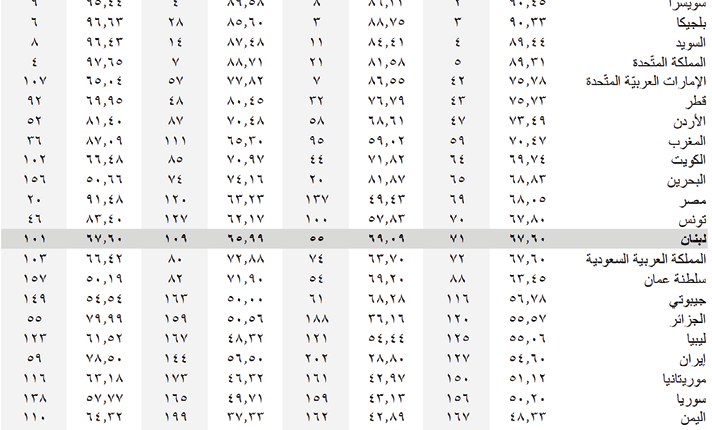 لبنان يحتلّ المركز ٧١ في العالم في مؤشّر العولمة ٢٠٢١
