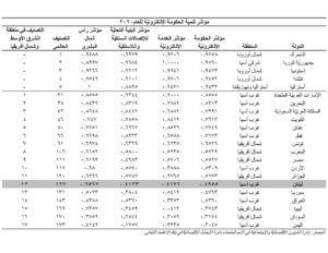 وقد حلت الدنمارك في المرتبة الاولى عالمياً بنتيجة ٠،٩٧٥٨ في مؤشر تنمية الحكومة الالكترونية للعام ٢٠٢٠ تلتها جمهورية كوريا بنتيجة ٠،٩٥٦٠ وإستونيا بنتيجة ٠،٩٤٧٣، وفنلندا بنتيجة ٠،٩٤٥٢، واوستراليا بنتيجة ٠،٩٤٣٢ وعلى صعيد إقليميّ حلّت الإمارات العربية في المرتبة الأولى في منطقة الشرق الأوسط وشمال أفريقيا بنتيجة ٠،٨٥٥٥ (المرتبة العالمية:٢١) تلتها البحرين بنتيجة ٠،٨٢١٣ (المرتبة العالمية: ٣٨) والمملكة العربية السعودية بنتيجة ٠،٧٩٩١ (المرتبة العالمية: ٤٣) والكويت بنتيجة ٠،٧٩١٣ (المرتبة العالمية:٤٦) وعمان بنتيجة ٠،٧٧٤٩ (المرتبة العالمية: ٥٠). أما على الصعيد المحلّي، فسجّل لبنان نتيجة ٠،٤٩٥٥ في مؤشر تنمية الحكومة الالكترونية للعام ٢٠٢٠ مقارنةً بنتيجة ٠،٥٥٣٠ التي سجلها في العام ٢٠١٨، إلا أن التقرير عزا هذا الإنخفاض بشكل أساسي إلى بعض التعديلات التي تم ادخلها على طريقة احتساب المؤشّر، محتلاً بذلك المرتبة ١٢ في منطقة الشرق الأوسط وشمال أفريقيا والمرتبة ١٢٧ عالميًا. بالتفاصيل، سجل لبنان نتيجة ٠،٤١٧٦ في مؤشر الخدمة الإلكترونية (مقارنةً مع نتيجة ٠،٤٧٢٢ في العام ٢٠١٨) ونتيجة ٠،٤١٢٣ في مؤشر البنية التحتية للإتصالات السلكيّة واللاسلكية (مقارنة مع نتيجة ٠،٥٢١٩ في العام ٢٠١٨) ونتيجة ٠،٦٥٦٧ في مؤشر رئس المال البشري (مقارنةً مع نتيجة ٠،٦٦٤٩ في العام ٢٠١٨).