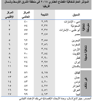 لبنان يحتل المركز 81 عالمياً في مؤشر شفافية القطاع العقاري للعام 2018
