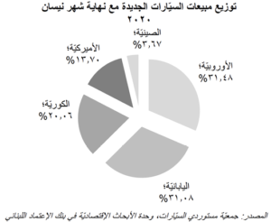 إستنادًا إلى إحصاءات جمعية مستوردي السيارات، تراجعت مبيعات السيارات الجديدة في لبنان إلى ١٨٨ سيارة خلال شهر نيسان/أبريل ٢٠٢٠ مقارنةً مع ٤٦٨ سيارة في شهر آذار/مارس و٢،١٦٨ سيارة في شهر نيسان/أبريل ٢٠١٩. يأتي هذا التراجع في ظلّ الأوضاع المالية والسياسيّة الصعبة والتعبئة العامة التي رافقت تفشّي فيروس الكورونا. كذلك على صعيد تراكمي، فقد إنخفضت مبيعات السيارات الجديدة بنسبة ٦٨،٧٥٪ سنويًا إلى ٢،٥٣٢ سيارة خلال فترة الأشهر الأربعة الأولى من العام الحالي، من ٨،١٠٢ سيارة في الفترة نفسها من العام المنصرم. يعود ذلك بالأخصّ إلى تراجُع مبيعات السيارات اليابانيّة بنسبة ٧٤،٧٧٪ إلى ٧٨٧ سيّارة، ترافقًا مع إنكماش مبيع السيارات الكوريّة بنسبة ٧٤،٩٩٪ إلى ٥٠٨ سيارة وإنخفاض مبيعات السيّارات الأوروبيّة بنسبة ٥٩،١٧٪ إلى ٧٩٧ سيارة للذكر لا للحصر. يجدر الذكر، في هذا السياق، أنّ عدد السيّارات المستورَدة عبر مرفأ بيروت كان قد تقلّص بـ ٧٠،٩٤٪ سنويًا في شباط/فبراير ٢٠٢٠. وتُبيِّن الإحصاءات أن السيارات الأوروبية الصنع قد تَصَدَّرَت مبيعات السيارات الجديدة في لبنان، بحيث بلغت حصّتها من السوق ٣١،٤٨٪ مع نهاية شهر نيسان/أبريل ٢٠٢٠، تلتها السيارات اليابانية (٣١،٠٨٪) والكورية (٢٠،٠٦٪)، ومن ثمّ السيارات الأميركية (١٣،٧٠٪) والصينية (٣،٦٧٪).
