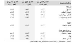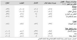 أما لجهة أداء القطاع التجاري، فقد بقيت الفجوة المتعلقة بحصيلة أراء مدراء الشركات فيما خص حجم المبيعات المحققة خلال الفصل الثاني من العام ۲۰۲۰ سلبية عند ٧٤–٪ مقارنة مع نسبة ٦٣–٪ في الفصل الذي سبقه، أما فيما يختص بقطاع البناء والأشغال العامة، فقد زادت الفجوة السلبية لحصيلة أراء مدراء الشركات المستطلعين لجهة مؤشرات “مجمل الأعمال” و”البناء” إلى ٨١–٪ و٧٨–٪ بالتتالي، من ٧٥–٪ و٧٦–٪ في الفصل الذي سبقه، في حين تحسنت حصيلة الآراء لجهة مؤشر قطاع “الأشغال العامة” من ۷۹–٪ إلى ٧٦–٪ في الفترة المذكورة،
