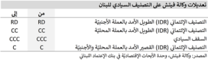 أخيرًا، اشارت الوكالة إلى أنها ستعيد النظر إيجابيًا بتصنيف لبنان في حال توصلت الحكومة إلى إتفاق إعادة هيكلة مع دائنيها ونجحت بتطبيق هذا الإتفاق. من ناحية أخرى، أعلنت الوكالة أنها ستخفض التصنيف الإئتماني الطويل الأمد بالعملة المحلية إلى «C» في حل تم التوصل إلى إتفاق لإعادة هيكلة الدين بالعملة المحلية وإلى «RD» في حال حصول تخلّف عن دفع هذا الدين من دون التوصل إلى إتفاق لإعادة هيكلته.