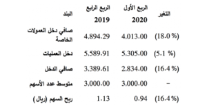 بينما عزا البنك سبب انخفاض الأرباح خلال الربع الحالي مقارنة بالربع السابق إلى انخفاض إجمالي دخل العمليات بنسبة ٥،١٪، نتيجة لانخفاض صافـي دخل العمولات الخاصة، وارتفاع مصاريف العمليات الأخرى. وفي المقابل، ارتفع الدخل من رسوم الخدمات المصرفية ودخل تحويل العملات الأجنبية، كما ارتفع الدخل من الاستثمارات.